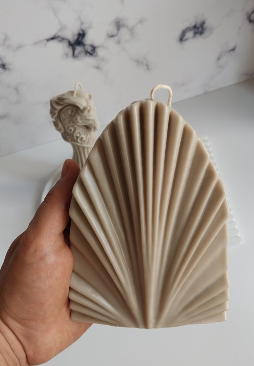 این شمع بافتی ظریف و مجسمهگون دارد که در نور ملایم، بازی زیبایی از سایه و روشن ایجاد میکند.